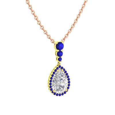 Beyaz zirkon ve lab safir 925 ayar altın kaplama gümüş kolye (40 cm gümüş rolo zincir)