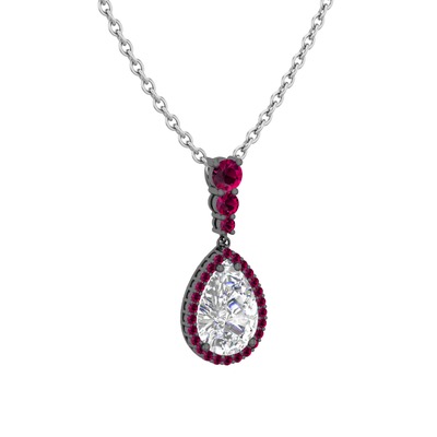Beyaz zirkon ve rodolit garnet 925 ayar siyah rodyum kaplama gümüş kolye (40 cm beyaz altın rolo zincir)