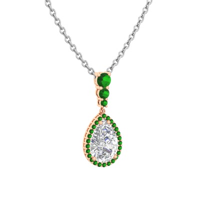 Beyaz zirkon ve yeşil kuvars 18 ayar rose altın kolye (40 cm gümüş rolo zincir)