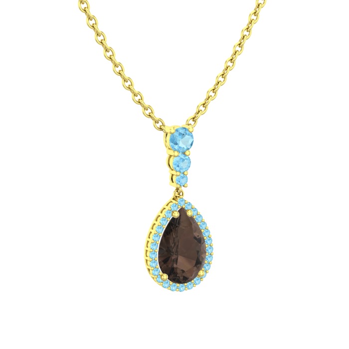 Dumanlı kuvars ve akuamarin 18 ayar altın kolye (40 cm altın rolo zincir)