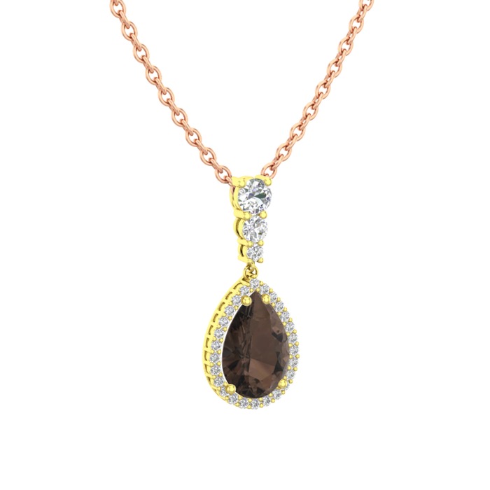 Dumanlı kuvars ve beyaz zirkon 14 ayar altın kolye (40 cm rose altın rolo zincir)