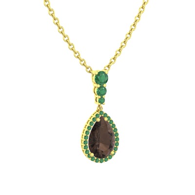 Dumanlı kuvars ve kök zümrüt 14 ayar altın kolye (40 cm altın rolo zincir)