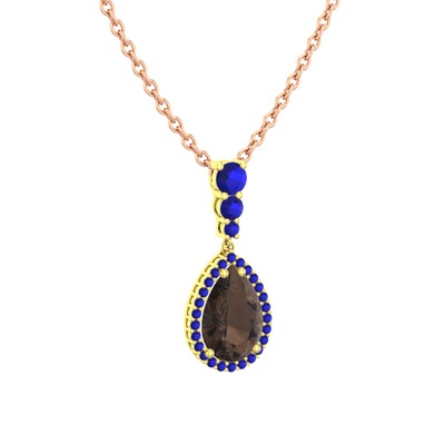 Dumanlı kuvars ve lab safir 8 ayar altın kolye (40 cm rose altın rolo zincir)