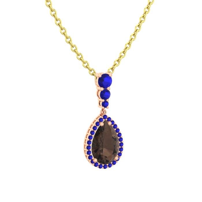 Dumanlı kuvars ve lab safir 8 ayar rose altın kolye (40 cm altın rolo zincir)