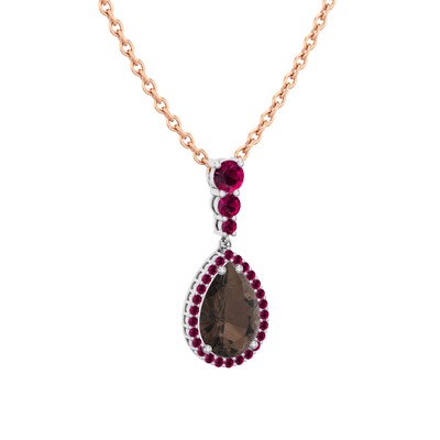 Dumanlı kuvars ve rodolit garnet 18 ayar beyaz altın kolye (40 cm gümüş rolo zincir)