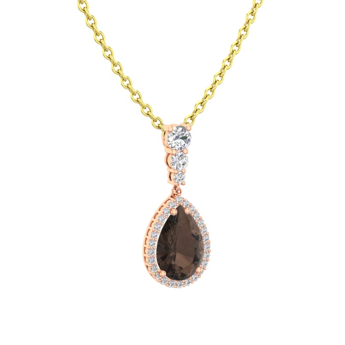 Dumanlı kuvars ve swarovski 18 ayar rose altın kolye (40 cm gümüş rolo zincir)