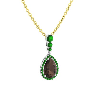 Dumanlı kuvars ve yeşil kuvars 18 ayar beyaz altın kolye (40 cm gümüş rolo zincir)