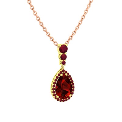 Garnet ve kök yakut 18 ayar altın kolye (40 cm rose altın rolo zincir)