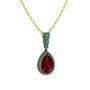 Garnet ve kök zümrüt 925 ayar siyah rodyum kaplama gümüş kolye (40 cm altın rolo zincir)