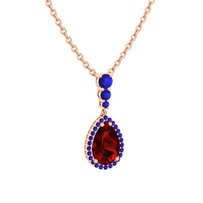 Garnet ve lab safir 8 ayar rose altın kolye (40 cm rose altın rolo zincir)
