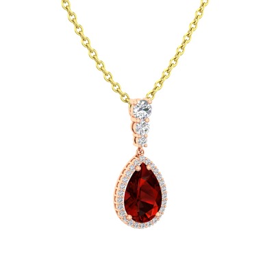 Garnet ve swarovski 14 ayar rose altın kolye (40 cm altın rolo zincir)