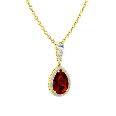 Garnet ve swarovski 18 ayar altın kolye (40 cm altın rolo zincir)