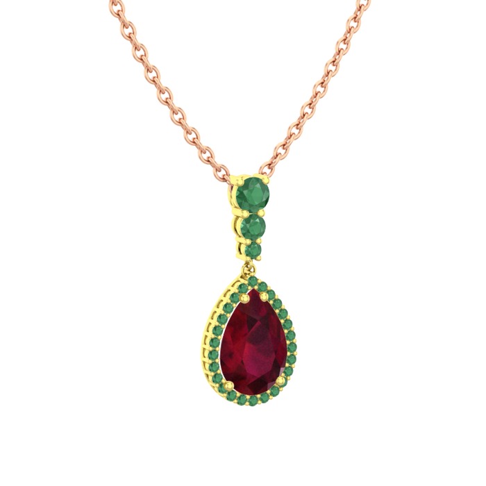 Kök yakut ve kök zümrüt 18 ayar altın kolye (40 cm rose altın rolo zincir)