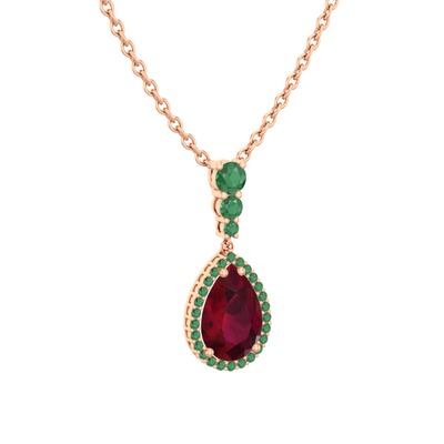 Kök yakut ve kök zümrüt 18 ayar rose altın kolye (40 cm rose altın rolo zincir)