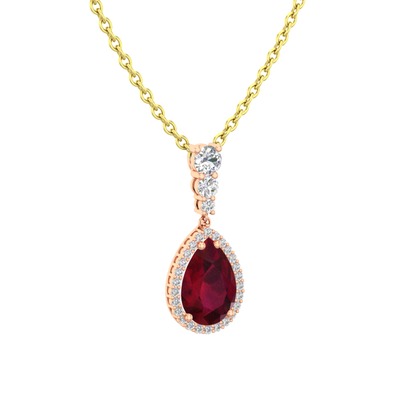 Kök yakut ve swarovski 14 ayar rose altın kolye (40 cm altın rolo zincir)