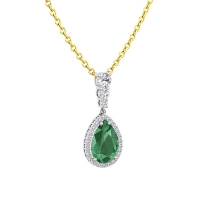 Kök zümrüt ve beyaz zirkon 18 ayar beyaz altın kolye (40 cm gümüş rolo zincir)