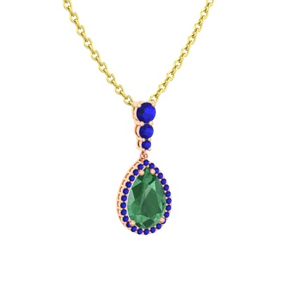 Kök zümrüt ve lab safir 8 ayar rose altın kolye (40 cm altın rolo zincir)