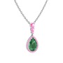 Kök zümrüt ve pembe kuvars 14 ayar beyaz altın kolye (40 cm beyaz altın rolo zincir)