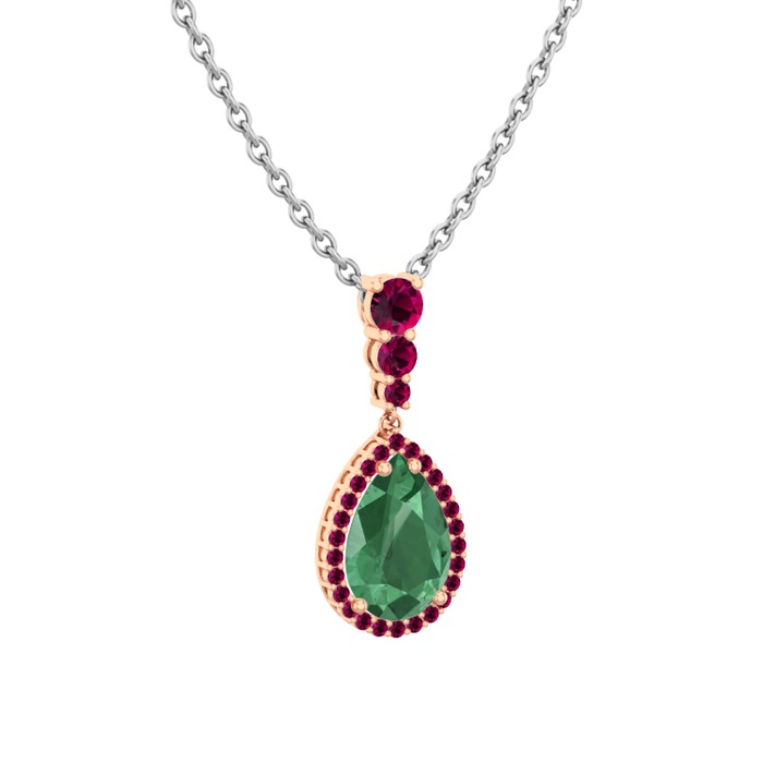 Kök zümrüt ve rodolit garnet 14 ayar rose altın kolye (40 cm beyaz altın rolo zincir)