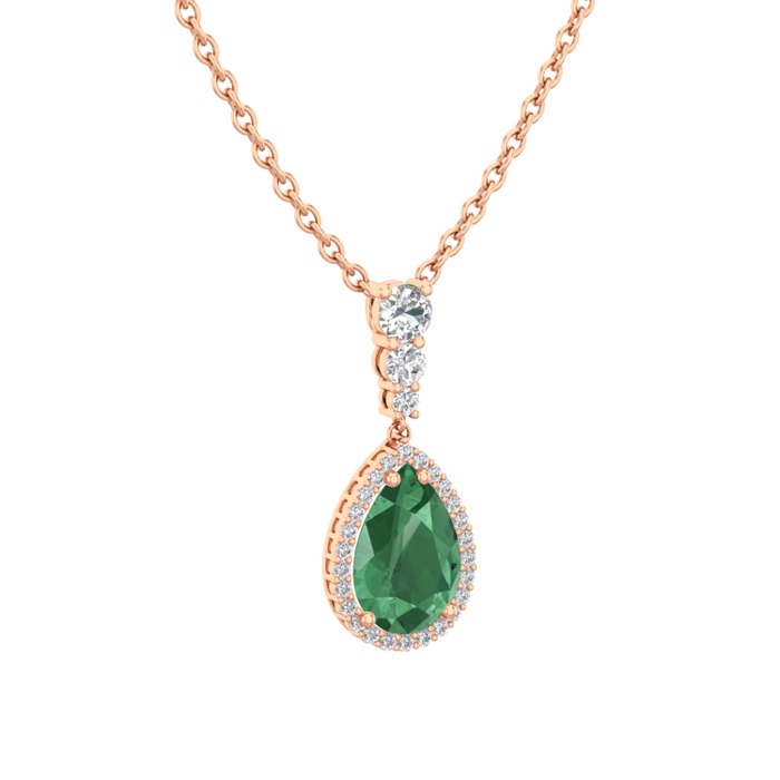 Kök zümrüt ve swarovski 14 ayar rose altın kolye (40 cm rose altın rolo zincir)
