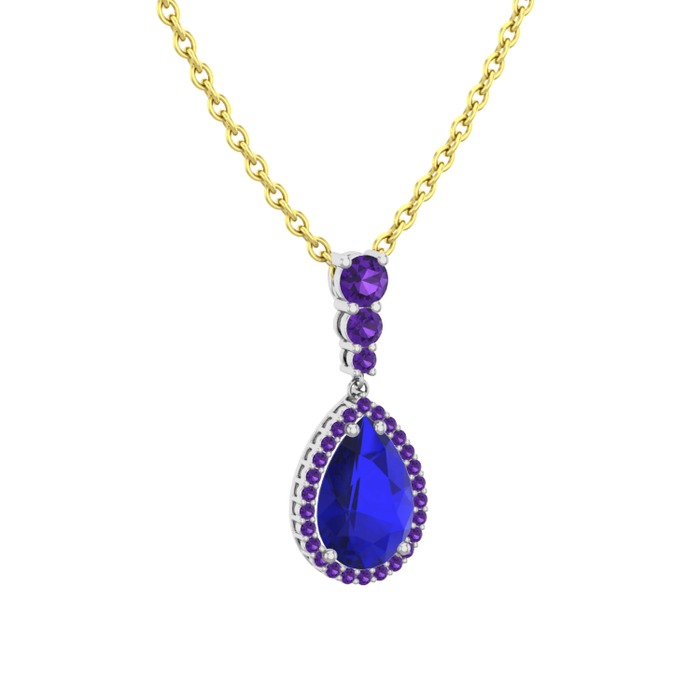 Lab safir ve ametist 8 ayar beyaz altın kolye (40 cm altın rolo zincir)