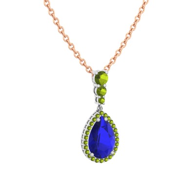 Lab safir ve peridot 8 ayar beyaz altın kolye (40 cm rose altın rolo zincir)
