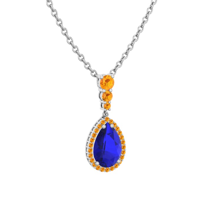 Lab safir ve sitrin 8 ayar beyaz altın kolye (40 cm beyaz altın rolo zincir)