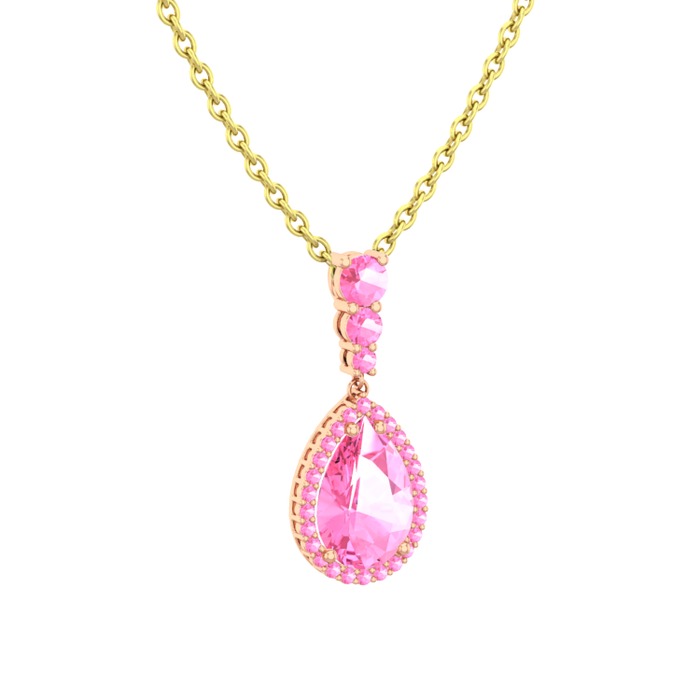 Pembe kuvars 18 ayar rose altın kolye (40 cm altın rolo zincir)