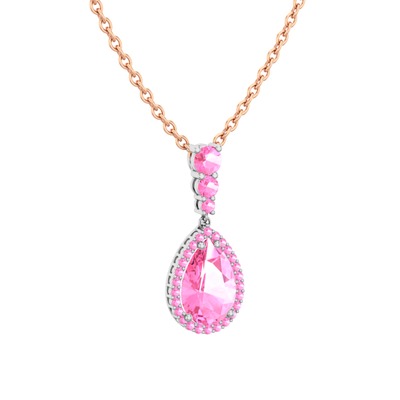 Pembe kuvars 8 ayar beyaz altın kolye (40 cm rose altın rolo zincir)