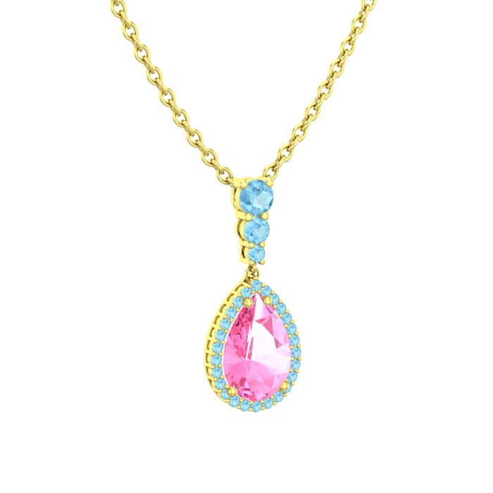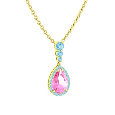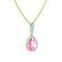 Pembe kuvars ve akuamarin 925 ayar altın kaplama gümüş kolye (40 cm gümüş rolo zincir)