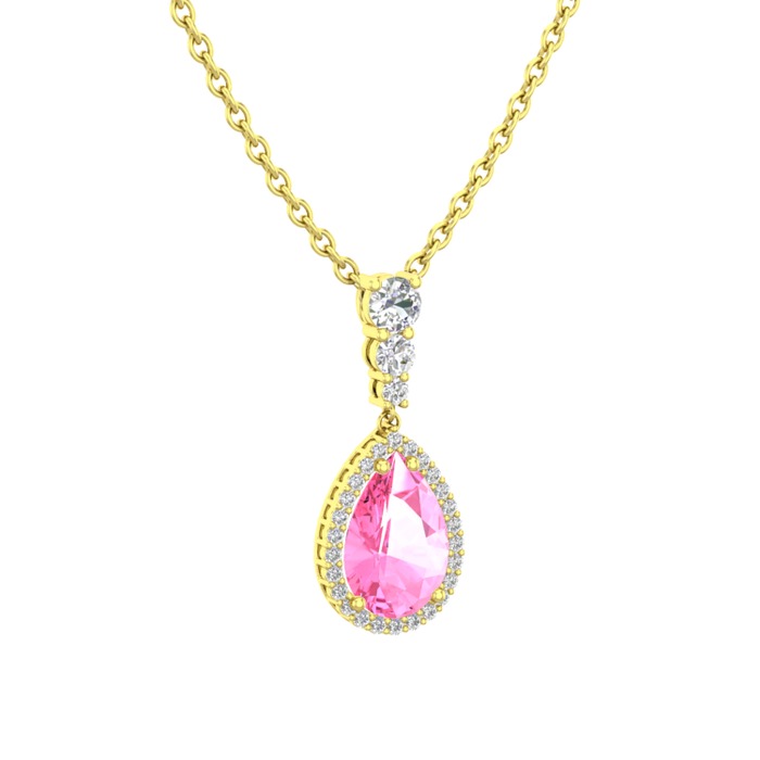 Pembe kuvars ve beyaz zirkon 925 ayar altın kaplama gümüş kolye (40 cm altın rolo zincir)