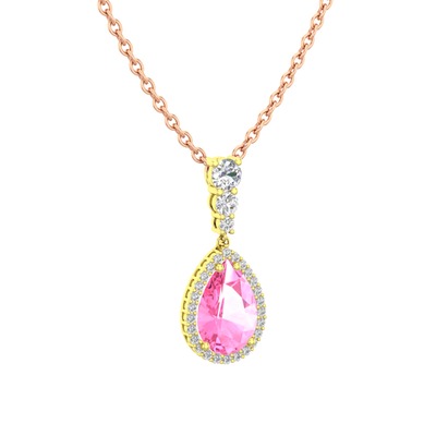 Pembe kuvars ve beyaz zirkon 925 ayar altın kaplama gümüş kolye (40 cm gümüş rolo zincir)