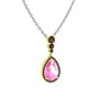 Pembe kuvars ve dumanlı kuvars 14 ayar altın kolye (40 cm gümüş rolo zincir)