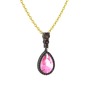 Pembe kuvars ve dumanlı kuvars 925 ayar siyah rodyum kaplama gümüş kolye (40 cm altın rolo zincir)