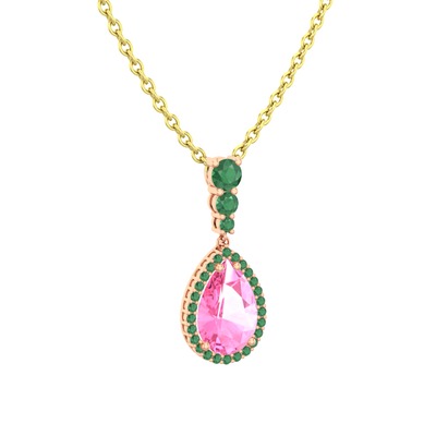 Pembe kuvars ve kök zümrüt 14 ayar rose altın kolye (40 cm altın rolo zincir)