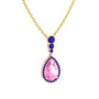 Pembe kuvars ve lab safir 8 ayar rose altın kolye (40 cm altın rolo zincir)