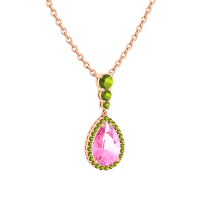 Pembe kuvars ve peridot 8 ayar rose altın kolye (40 cm rose altın rolo zincir)