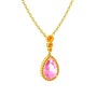 Pembe kuvars ve sitrin 14 ayar altın kolye (40 cm gümüş rolo zincir)
