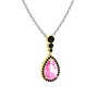 Pembe kuvars ve siyah zirkon 14 ayar altın kolye (40 cm beyaz altın rolo zincir)