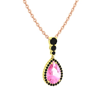 Pembe kuvars ve siyah zirkon 14 ayar altın kolye (40 cm gümüş rolo zincir)
