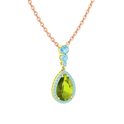 Peridot ve akuamarin 18 ayar altın kolye (40 cm rose altın rolo zincir)