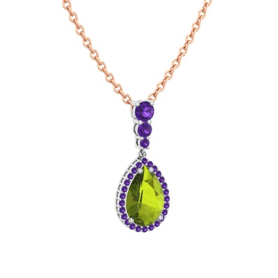 Peridot ve ametist 18 ayar beyaz altın kolye (40 cm rose altın rolo zincir)