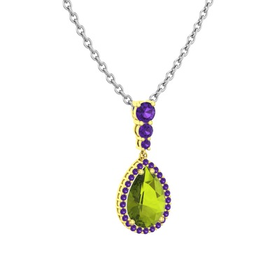 Peridot ve ametist 925 ayar altın kaplama gümüş kolye (40 cm beyaz altın rolo zincir)