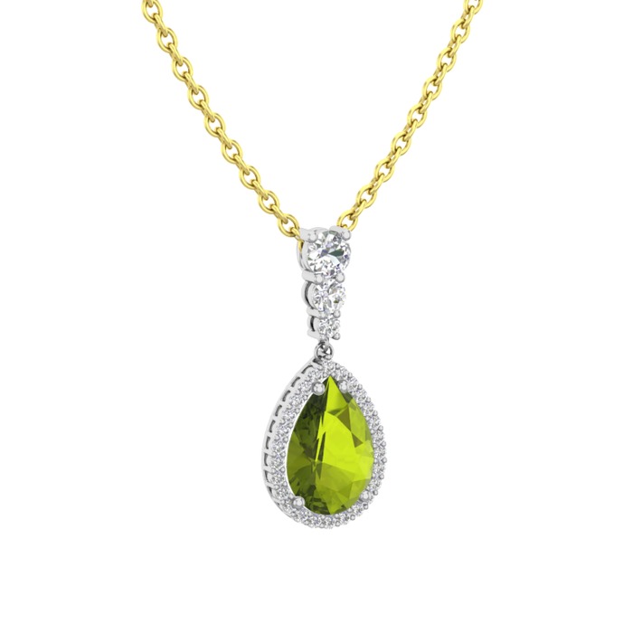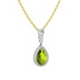 Peridot ve beyaz zirkon 18 ayar beyaz altın kolye (40 cm altın rolo zincir)