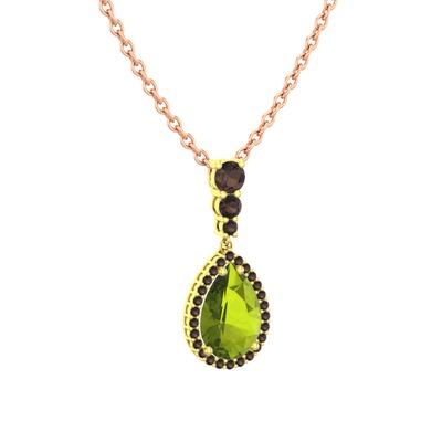 Peridot ve dumanlı kuvars 14 ayar altın kolye (40 cm rose altın rolo zincir)