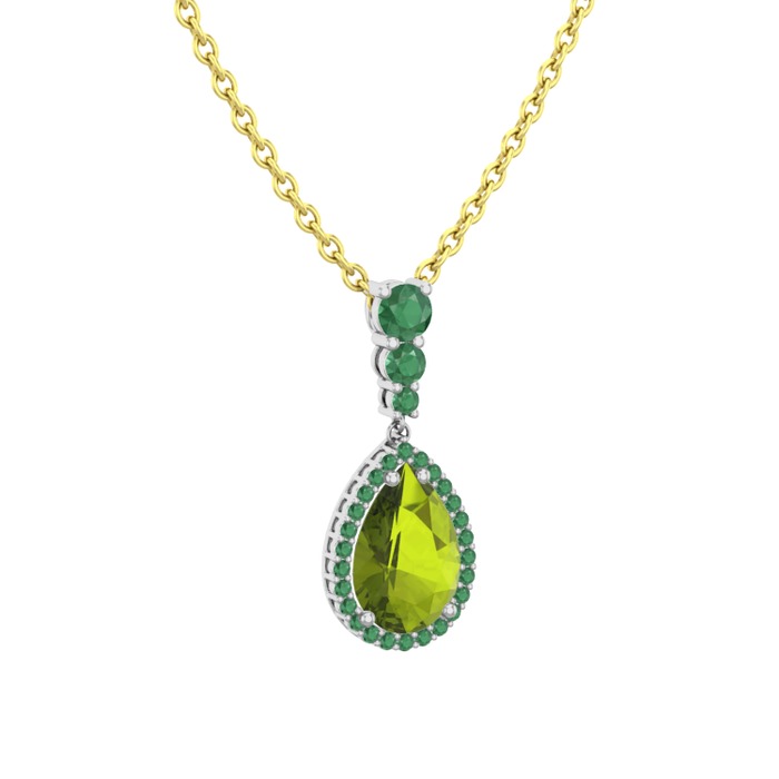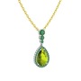 Peridot ve kök zümrüt 14 ayar beyaz altın kolye (40 cm altın rolo zincir)