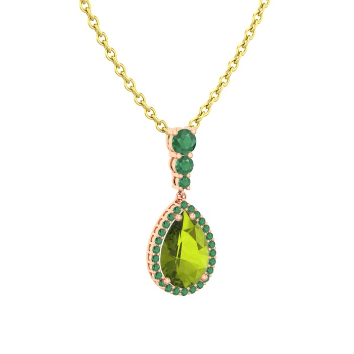 Peridot ve kök zümrüt 925 ayar rose altın kaplama gümüş kolye (40 cm altın rolo zincir)