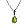 Peridot ve siyah zirkon 14 ayar beyaz altın kolye (40 cm gümüş rolo zincir)