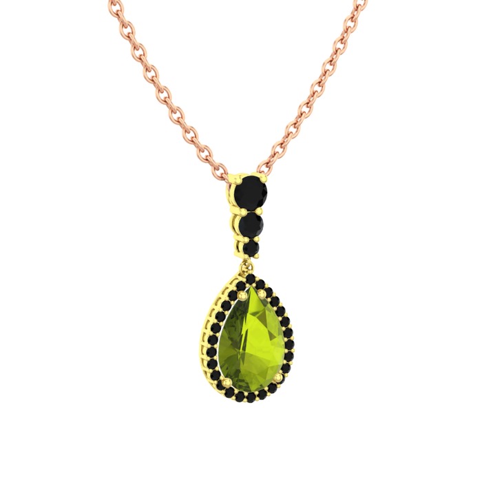 Peridot ve siyah zirkon 8 ayar altın kolye (40 cm rose altın rolo zincir)
