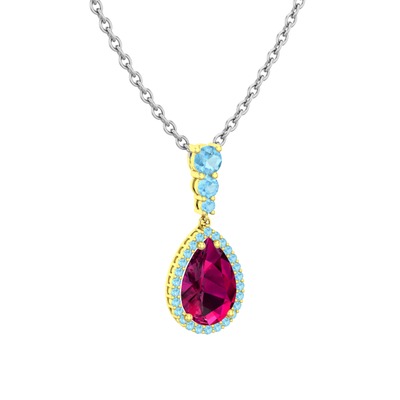 Rodolit garnet ve akuamarin 925 ayar altın kaplama gümüş kolye (40 cm beyaz altın rolo zincir)